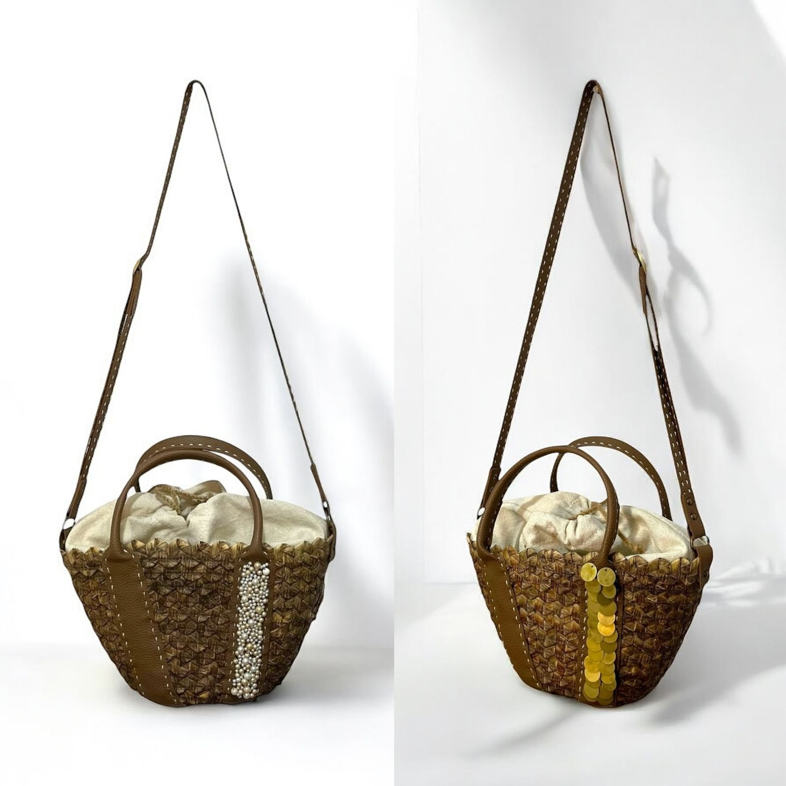 Handwoven straw body with sturdy leather paneling